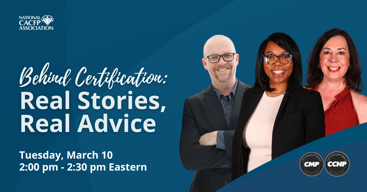 Ready to be inspired by stories of growth and success? Join CACFP Professionals as they share their experiences earning their CACFP Management Professional (CMP) and/or CACFP Child Nutrition Professional (CCNP) designation. Hear firsthand how they got started, what kept them motivated and how earning certification helped shape and strengthen their careers.