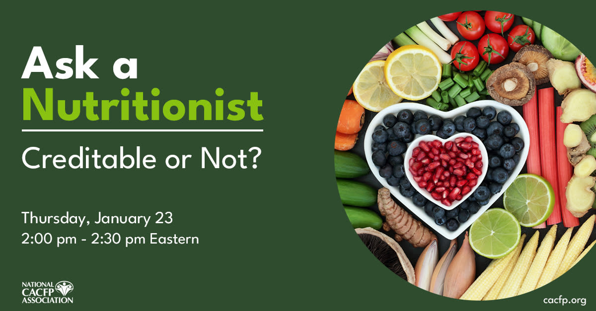 Determining which foods are creditable in the CACFP can sometimes feel like a guessing game. Isabel Ramos-Lebron, our Nutrition Education Specialist, can walk you through the ins and outs of the CACFP meal pattern. Bring your questions about what is and isn't creditable, and learn the reasoning behind each guideline to help you confidently serve meals that meet CACFP standards.